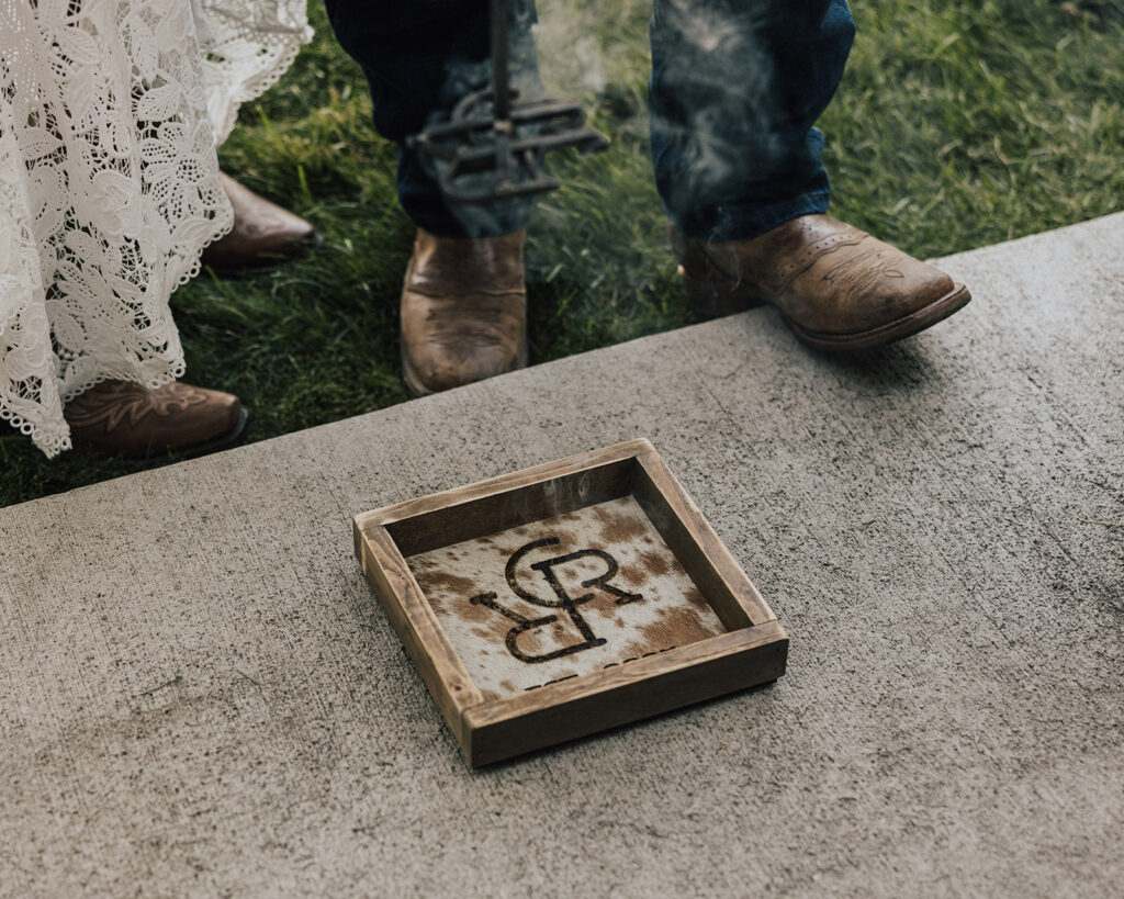 Ray and Casey leaned into a western vibe that actually fit who they are. One of the most personal moments came from the custom brand they had made. They branded pieces of cowhide together, which was a unique touch.